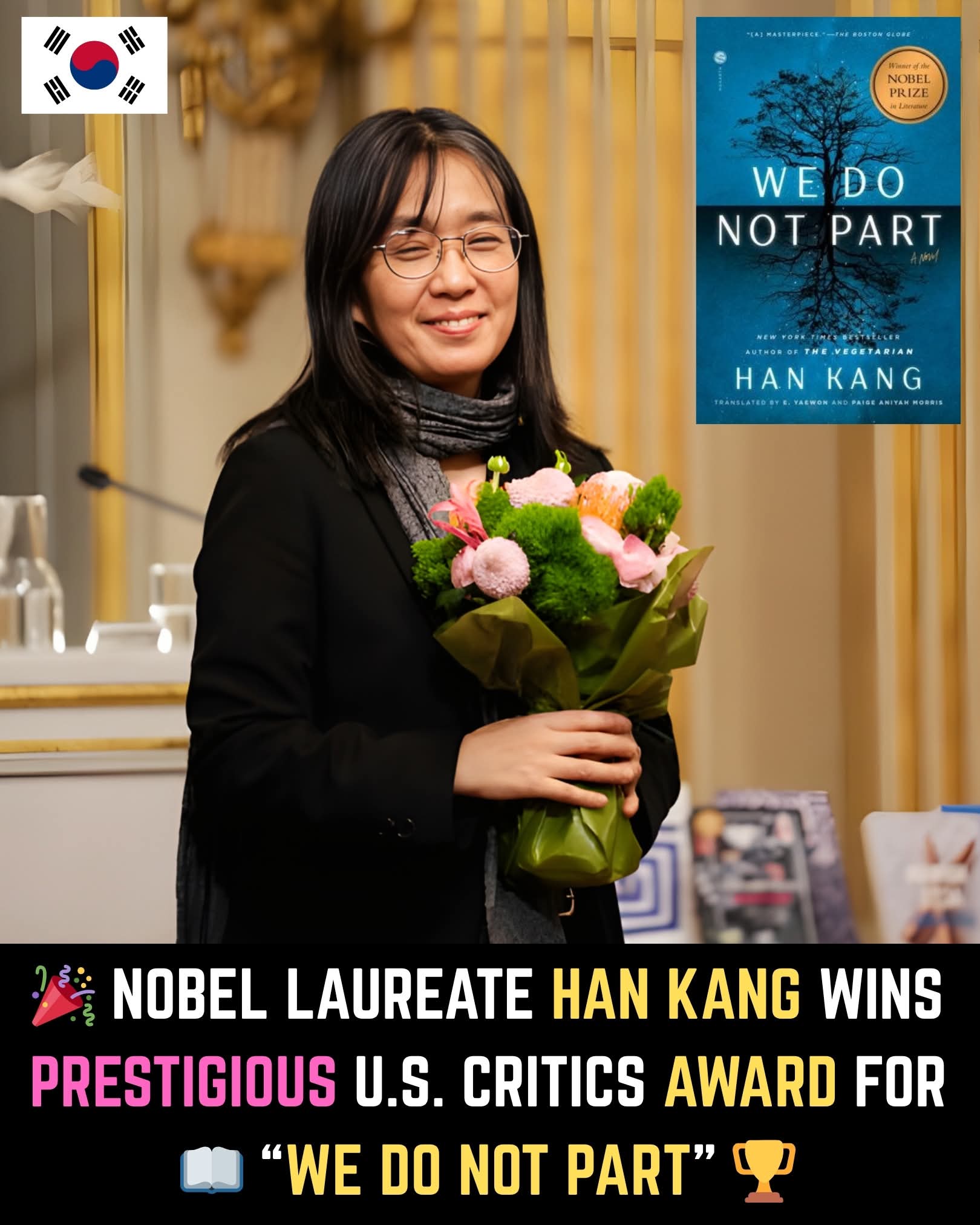 한강 노벨상 수상자 “우리는 헤어지지 않는다”로 미국 명문 비평가상을 수상했다