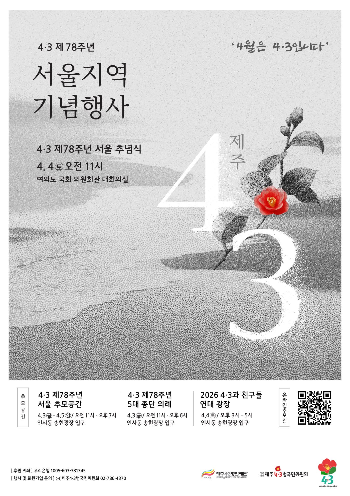 올해 4.3 제78주년 서울지역 기념행사 포스터를 주목해 주세요. 한강 작가 <작별하지 않는다>를 모티브로 정성껏 제작했거든요.