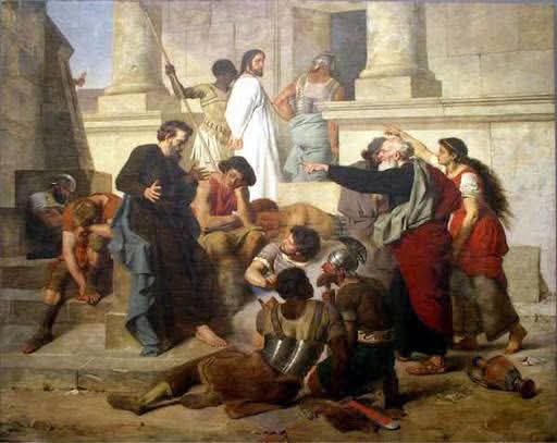 1)하속들 중 하나가 주님께 비열한 모욕을 가했다. 이 무례한 하인은 `손으로 예수를 쳐 가로되 네가 대제사장에게 이같이 대답하느냐`(22절)고 하였다.